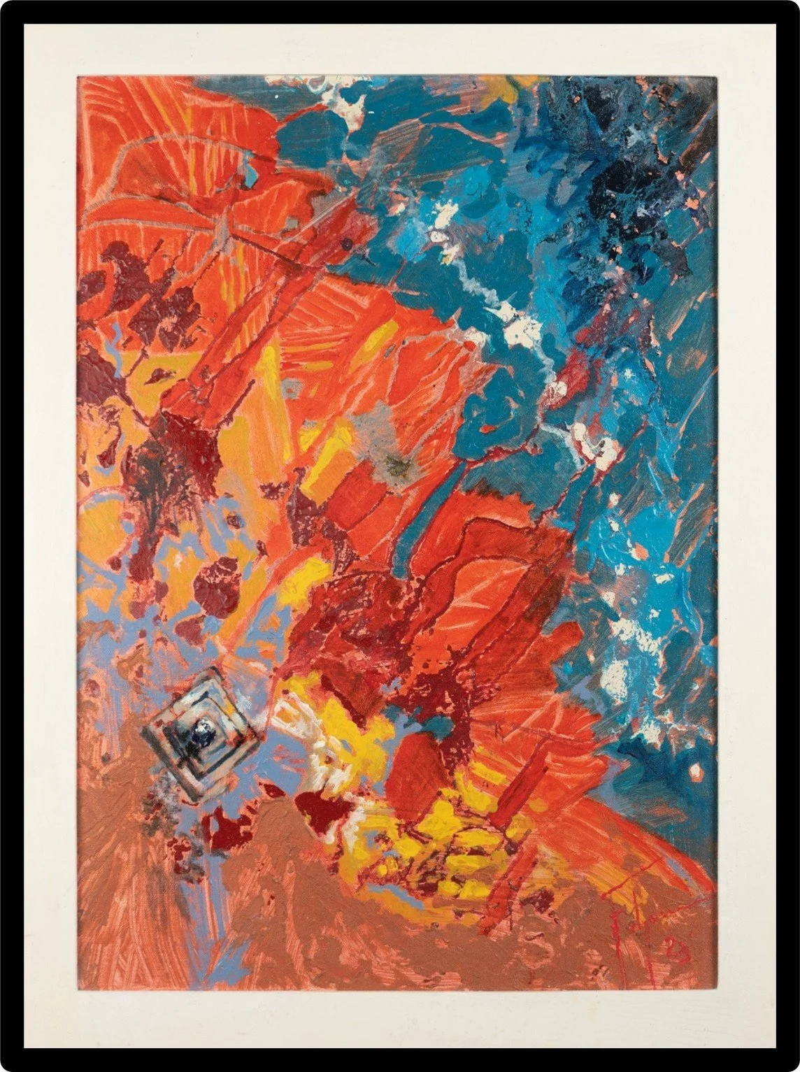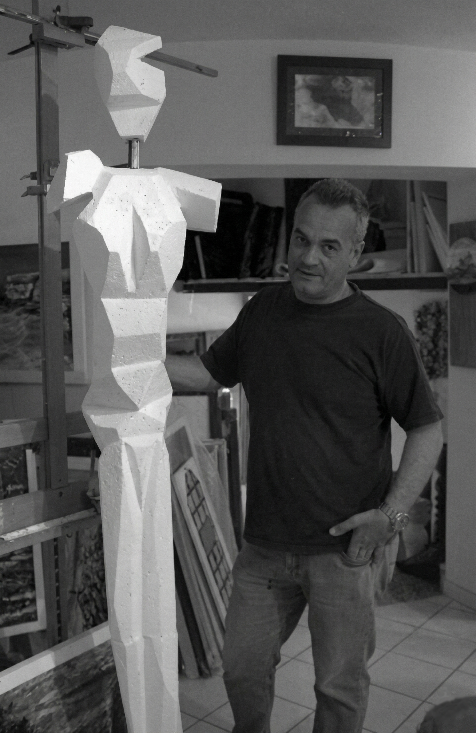 I dedicate significant time to both painting and sculpture. My paintings are characterized by bright primary colours and mixed media, while my sculptures, monochromatic and stylized, often take the form of anthropomorphic figures. I juxtapose these two practices as a reflexive exploration of the world and my own journey of self-discovery through art.